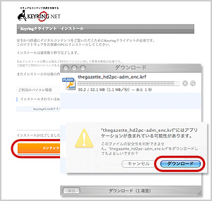 - 「KeyringFLASHクライアントのインストーラをダウンロード」ボタンをクリックして下さい。